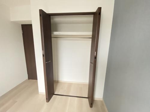 Villa Musica西宮北口の住戸における玄関と収納スペースは、限られた空間の中で快適な生活動線と使いやすさを実現するために、細部まで工夫された設計が施されています。まず玄関についてですが、ドアを開けた瞬間から清潔感と洗練された印象を感じさせる、シンプルかつ落ち着いた内装となっており、ダウンライトのやわらかな照明が空間を上品に照らし、帰宅時や来客時にも明るく迎えてくれます。床はフロア材とタイルの切り替えがしっかりとされており、靴の脱ぎ履きがしやすく、外からの汚れを居室内に持ち込みにくい仕様です。玄関扉には防犯性の高いディンプルキーとダブルロックが採用されており、セキュリティ面でも安心感があります。玄関横にはトールタイプのシューズボックスが設置されており、ブーツやスニーカー、ヒールなど様々なサイズの靴を効率よく収納できる可動棚タイプになっているため、靴の数が多い方や家族世帯でもすっきりと整理が可能です。扉付きの収納は見た目にもすっきりしており、玄関まわりに生活感を出さず、スマートな印象を保つことができます。また、シューズボックスの上部にはカウンターが設けられているため、鍵や小物、インテリア雑貨などを置くスペースとして活用できるほか、季節に応じた飾りを置くことで、自分らしい玄関空間を演出することも可能です。収納に関しては、各部屋にしっかりとしたクローゼットが設けられており、衣類や生活用品の整理整頓がしやすく、居住空間を広く保つための工夫が随所に見られます。約7.5帖の洋室にはハンガーパイプと棚板が備わった大型クローゼットが設置されており、スーツやワンピースなど丈の長い衣類もそのまま収納できるほか、上部棚にはバッグや季節用品、リネン類などを収納することができます。もう一方の約5.6帖の洋室にもクローゼットが設置されており、子ども部屋や書斎として使う際にも、日常的な荷物の整理に困ることはありません。また、リビングダイニング内には物入れ(収納棚)も設けられており、掃除機や日用品のストック、生活雑貨などをまとめて収納できるスペースとして重宝します。これにより、生活感の出やすい細かいアイテムを視界から隠すことができ、すっきりとした空間を保つことが可能です。さらに、洗面所周辺にもリネン棚や洗剤の収納スペースが確保されていることが多く、タオルや入浴用品などを整理するのにも便利です。このように、Villa Musica西宮北口の住戸は、ただ収納があるというだけでなく、「どこに・何を・どう収納するか」という実用性と動線を意識した配置がなされており、居住空間を無駄なく使いながらも美しく整えられることが最大の特徴です。コンパクトながらも使い勝手がよく、暮らしの質を向上させるための収納設計が整っているため、単身者からファミリー層まで幅広いライフスタイルにフィットする住まいといえるでしょう。