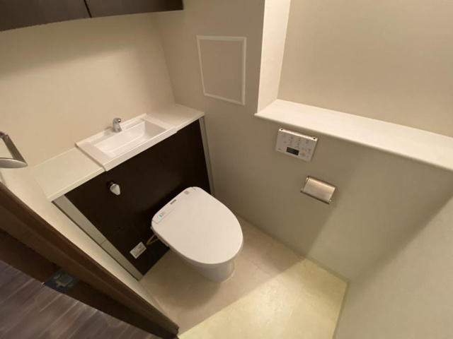 「プレミスト西宮北口」における水廻りは、日々の暮らしを支える機能性と、上質なリラクゼーション空間としての心地よさを兼ね備えた設計となっており、浴室はゆったりとしたサイズのバスタブを備え、追い焚き機能付きオートバスや浴室暖房乾燥機を標準装備し、冬の入浴時も快適な温度を保ちながら、雨の日には衣類乾燥スペースとしても活用できる利便性を持ち、落ち着いたトーンの壁パネルと艶やかな浴槽が織りなす上品な雰囲気が、まるで自宅の中にスパを思わせる癒しの空間を生み出しており、洗面室には幅広の三面鏡付き洗面化粧台を設け、鏡裏収納や足元収納など、多彩な収納スペースを確保することで、日用品やタオル類をすっきりと整理でき、清潔感と機能性を両立した使いやすい空間となっており、カウンタートップには上質な素材を用い、水撥ねや汚れに強い設計が施されているほか、照明の光が柔らかく反射し、朝の身支度の時間を快適に演出してくれることも魅力であり、またトイレは独立型でプライバシーに配慮され、節水タイプのタンクレストイレを採用し、手洗いカウンターや収納棚も備えられているため、デザイン性と実用性の双方に優れ、毎日の生活の中で自然と心地よさを感じられる仕様となっており、さらに全体として水廻りの動線がスムーズに計画されていることで、家事や身支度の効率を高め、家族それぞれの時間を快適に支える空間構成が実現しており、清潔感、機能性、そして美しさのすべてを追求した「プレミスト西宮北口」の水廻りは、暮らしの質を静かに、しかし確実に高めてくれる存在である。