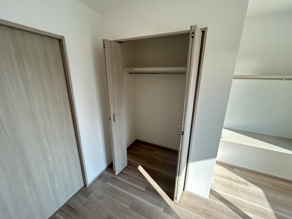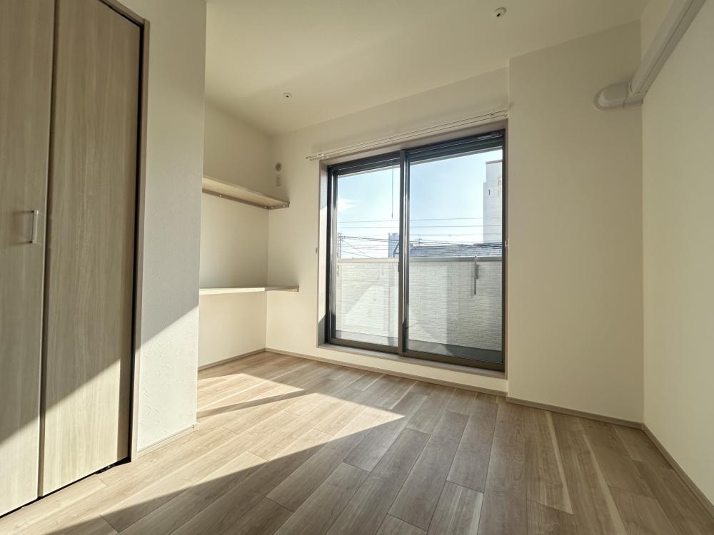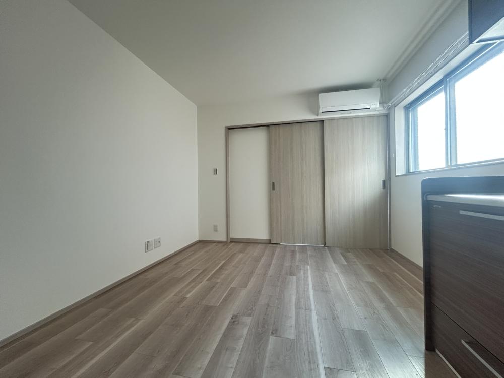 グランディール清華2・303号室の洋室は、プライベートな時間を落ち着いて過ごすための空間として、実用性と居心地の良さが重視された部屋だと考えられます。リビングから程よく独立した配置になっていることで、生活音や来客の気配を過度に気にせず、自分だけの時間を確保しやすい点が特徴です。寝室として利用する場合には、オンとオフの切り替えがしやすく、日々の疲れをしっかりと癒やせる環境が整っています。 洋室の形状は家具配置を想定したつくりになっていることが多く、ベッドやデスク、収納家具などを無理なく配置できる点が魅力です。特にベッドを置いても動線に余裕が生まれやすく、朝の身支度や就寝前の動きがスムーズに行えるでしょう。また、シンプルな内装であるため、カーテンや寝具、インテリア小物によって雰囲気を自由に変えやすく、自分好みの空間を演出しやすい点も洋室ならではの良さです。 採光面についても、窓から自然光が入ることで、日中は明るく、閉塞感を感じにくい空間になることが期待されます。朝は自然な光で目覚め、夜は落ち着いた照明で静かに過ごすといった、生活リズムを整えやすい環境が整っていることは、長く住むうえで大きなメリットです。 このように303号室の洋室は、単なる「寝るための部屋」ではなく、休息や趣味、在宅ワークなど多様な使い方に対応できる柔軟性を持った空間と言えるでしょう。リビングと組み合わせることで、メリハリのある暮らしを実現できる点が、この洋室の魅力です