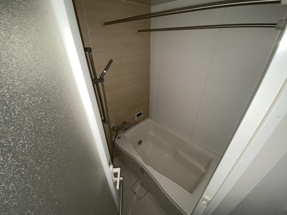 バスルームは一人暮らし用として必要十分な広さを確保しながら、清潔感と使いやすさを重視した設計が魅力です。浴槽はしっかりとした深さがあり、シャワーだけで済ませたい日も、ゆっくり湯船に浸かって疲れを癒したい日も、どちらのニーズにも対応できます。仕事や学校で忙しい日々を送る中で、入浴時間は心身をリセットする大切な時間となりますが、本物件のバスルームは落ち着いて過ごせる空間としてその役割をしっかり果たしてくれます。浴室内はシンプルな構造のため掃除がしやすく、日常的なお手入れの負担を軽減できる点も嬉しいポイントです。換気にも配慮されており、湿気がこもりにくくカビの発生を抑えやすい環境が整っています。見た目だけでなく実用性にも優れているため、毎日気持ちよく使い続けることができます。コンパクトながらも機能性をしっかりと備えたバスルームは、生活の質を着実に高めてくれる存在です。