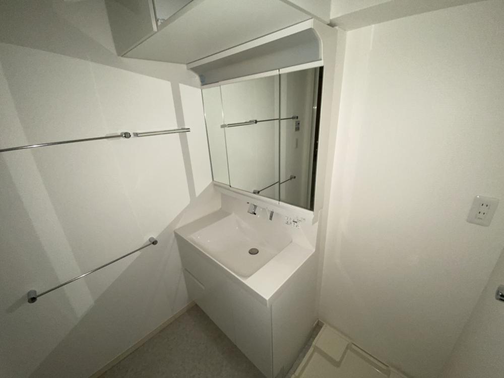 独立洗面台が設置されている点は、1Kタイプの物件として非常に大きな魅力であり、日々の生活を快適にしてくれる重要な設備です。洗面スペースが独立していることで、洗顔や歯磨き、身支度といった動作を落ち着いて行うことができ、特に朝の忙しい時間帯でもスムーズに準備が進みます。鏡は視認性が高く、顔全体をしっかり確認できるため、身だしなみを整える際のストレスも軽減されます。洗面ボウル周辺には小物を置けるスペースがあり、化粧品や整髪料などを整理しながら使える点も実用的です。浴室と洗面台が分かれているため、水はねや湿気の影響を受けにくく、常に清潔な状態を保ちやすい点も独立洗面台ならではのメリットです。一人暮らしでも生活の質を妥協したくない方にとって、この独立洗面台は日常をワンランク上げてくれる設備と言えます。
