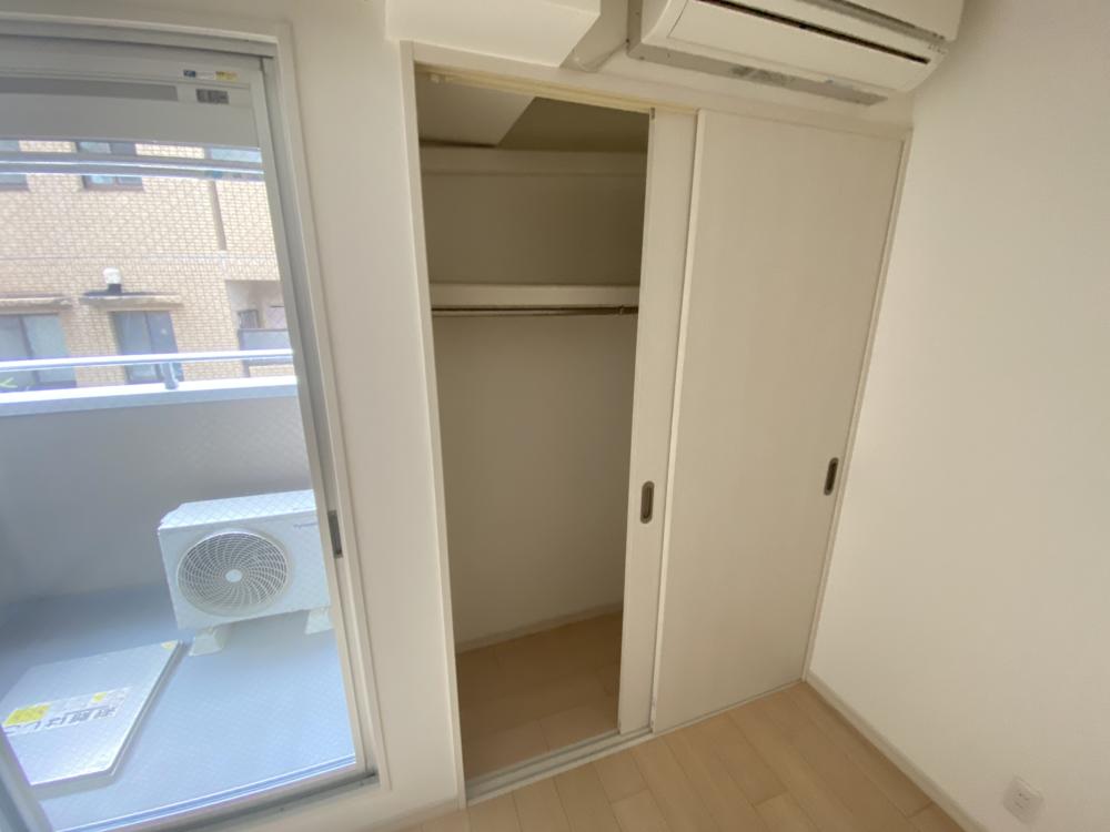 収納スペースはクローゼットを中心に確保されており、1Kタイプとしては十分な収納力を備えています。衣類はもちろん、バッグや日用品、季節物のアイテムまでまとめて収納できるため、居室空間を広く使える点が魅力です。収納がしっかりしていることで、余計な収納家具を増やす必要がなく、室内全体をすっきりとした印象に保つことができます。整理整頓がしやすくなることで生活動線も自然と整い、日々の暮らしに余裕が生まれます。29.41㎡という広さを最大限に活かすうえで収納の存在は非常に重要ですが、本物件はその点をしっかり押さえており、単身生活を快適に支えてくれます。荷物が多めの方でも安心して暮らせる、実用性とバランスに優れた収納スペースです。