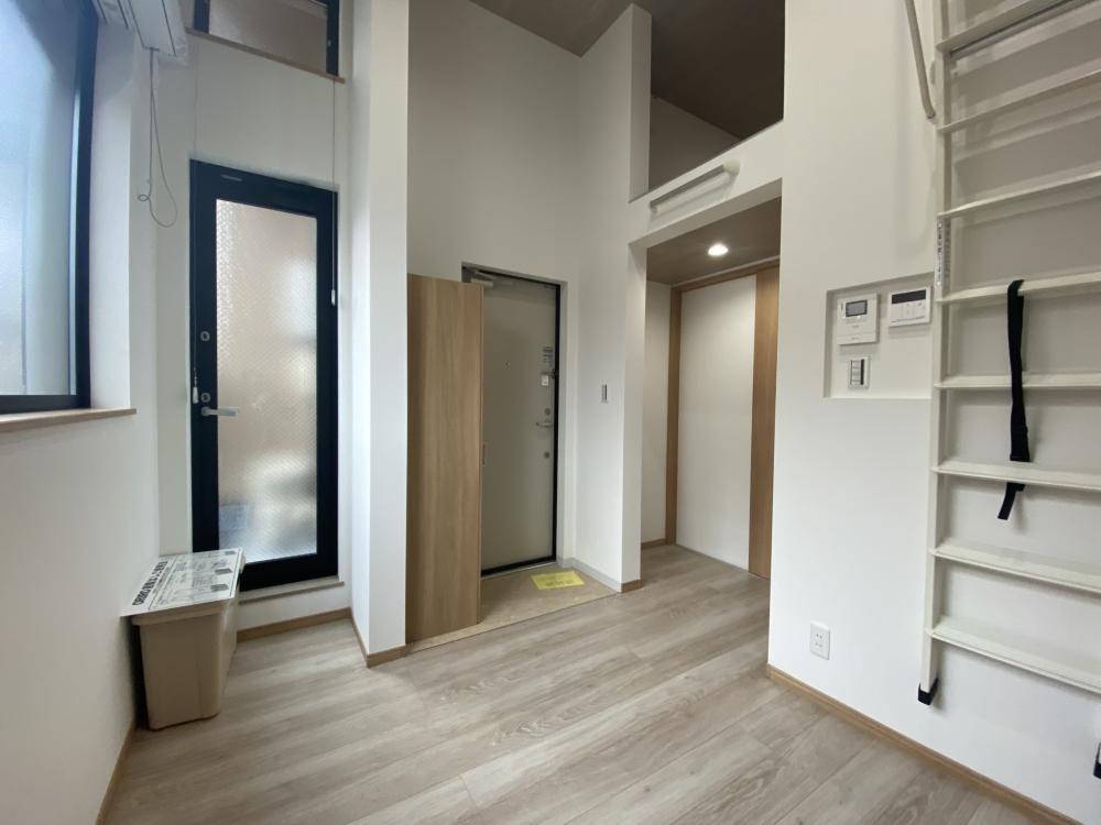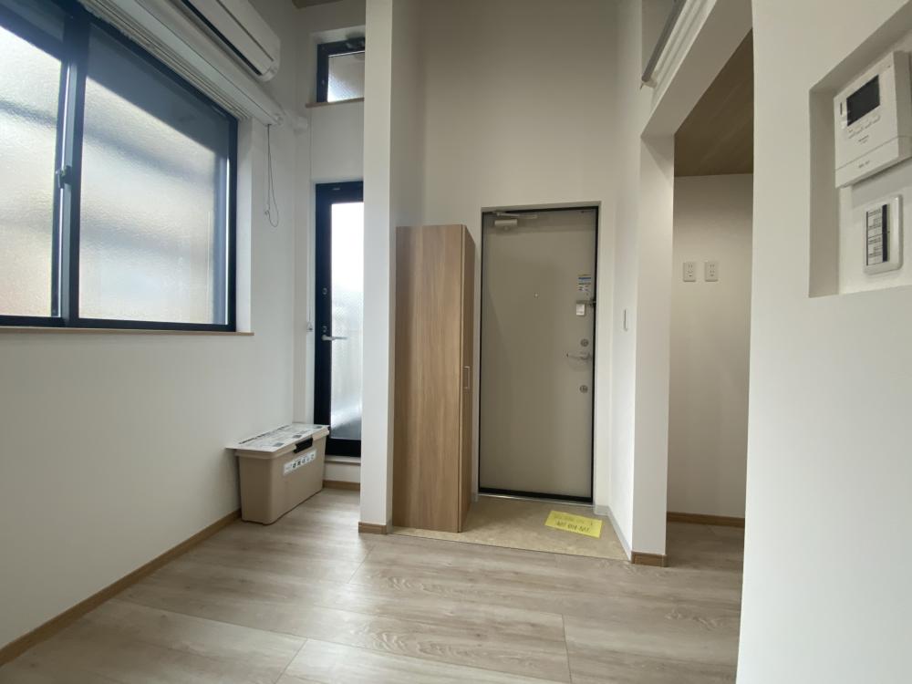 loulou今津の玄関は、住まいの第一印象を決定づける大切な空間として、機能性とデザイン性の両面に配慮した設計がなされています。扉を開けた瞬間に感じられるのは、落ち着いた色合いと清潔感のある内装で、外から帰宅した際にほっと一息つけるような安心感があります。床には耐久性と清掃性に優れた素材が採用されていることが多く、雨の日や汚れが気になる場面でも手入れがしやすく、美観を保ちやすい仕様となっています。上がり框の段差は適度な高さに抑えられ、スムーズな出入りをサポートします。シューズボックスは容量にゆとりを持たせた設計で、日常的に使用する靴はもちろん、ブーツやスニーカー、来客用の履物まで整理しやすく、内部に可動棚が備わっている場合には収納物に合わせて高さ調整が可能です。これにより、限られたスペースを無駄なく活用でき、玄関周りを常にすっきりと保つことができます。鏡が設置されている場合には、外出前の身だしなみチェックがその場で行え、空間に奥行きを与える効果も期待できます。また、玄関から居室が直接見えにくいレイアウトであれば、プライバシーへの配慮が感じられ、来客時にも安心です。照明は足元まで明るく照らす配置がなされていることが多く、夜間の帰宅時でも安全に出入りできる環境が整っています。さらに、インターホンや防犯設備が連動している場合には、セキュリティ面でも安心感が高まります。玄関からLDKや水廻りへとつながる動線もスムーズに設計されており、買い物帰りに荷物を持ったままでも移動しやすい点が実用的です。コートや傘を掛けられるスペースが確保されている場合には、雨天時や季節の変わり目にも便利で、室内へ余計な水滴や汚れを持ち込みにくくなります。玄関は単なる出入り口ではなく、住まいと外界をつなぐ緩衝空間として重要な役割を果たしますが、loulou今津の玄関はその役割を十分に果たしつつ、日々の暮らしを快適に支える機能が丁寧に組み込まれています。整然とした空間構成と使いやすい収納計画により、帰宅時にも来客時にも心地よさを感じられる住まいの顔として、暮らしの質を高める存在となっています。